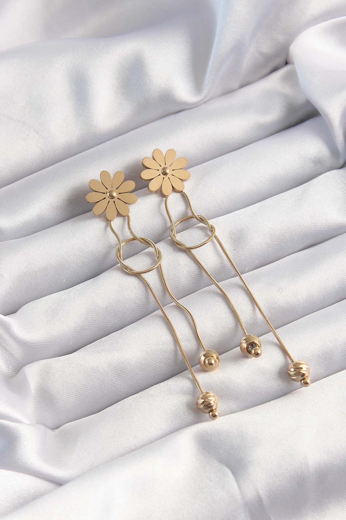 316L Çelik Altın Renk Sallantılı Düğüm Model Papatya Küpe