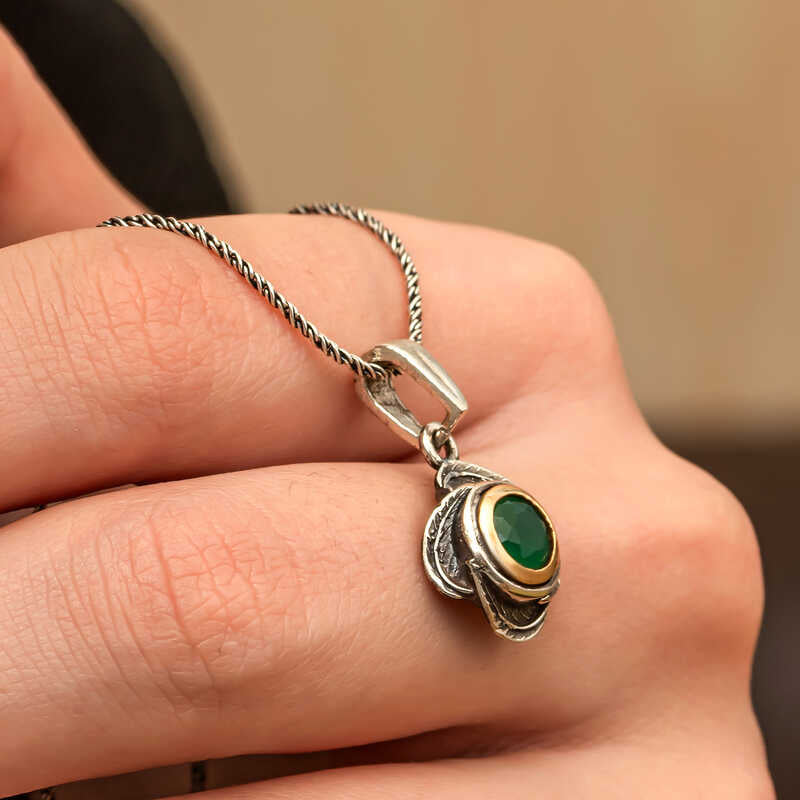 Gümüş Çiçek Desenli Otantik Kadın Kolye Yeşil taşlı otantik kolye geleneksel ve modern tarzları bir araya getirerek stilinize ikonik bir dokunuş katıyor.Hem bohem hem de klasik stillerle mükemmel bir uyum sağlar.Doğum günü hediyesi, sevgililer günü hediyesi veya annelere hediye olarak özel günlerde tercih edilebilecek mükemmel bir seçenektir.Gümüş yeşil çiçek desenli...