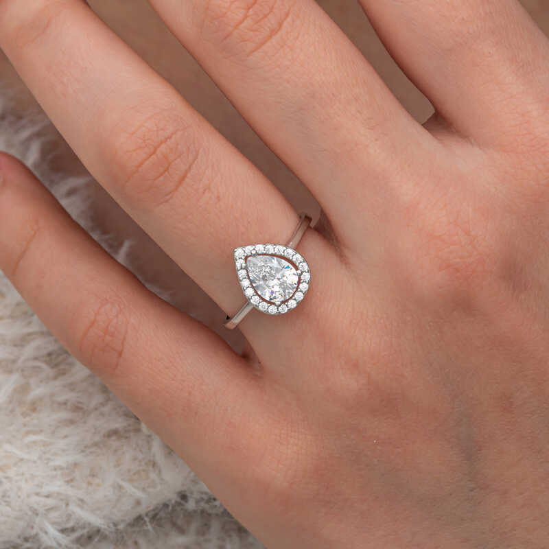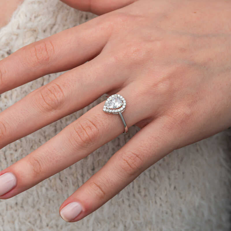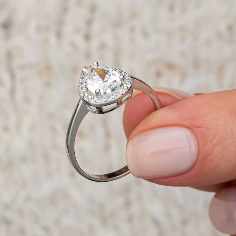 Gümüş Beyaz Zirkon Taşlı Damla Kadın Yüzük