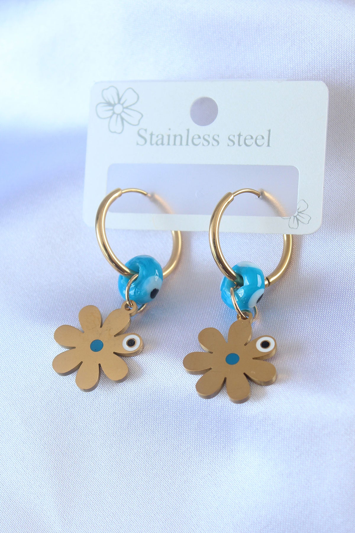 316L Çelik Gold Renk Çiçek Model Nazar Boncuk Detay Kadın Küpe - Ürün tipi 316L çeliktir kararmaz paslanmaz .- Sağlıklı ve mutlu günlerde kullanmanız dileğiyle…