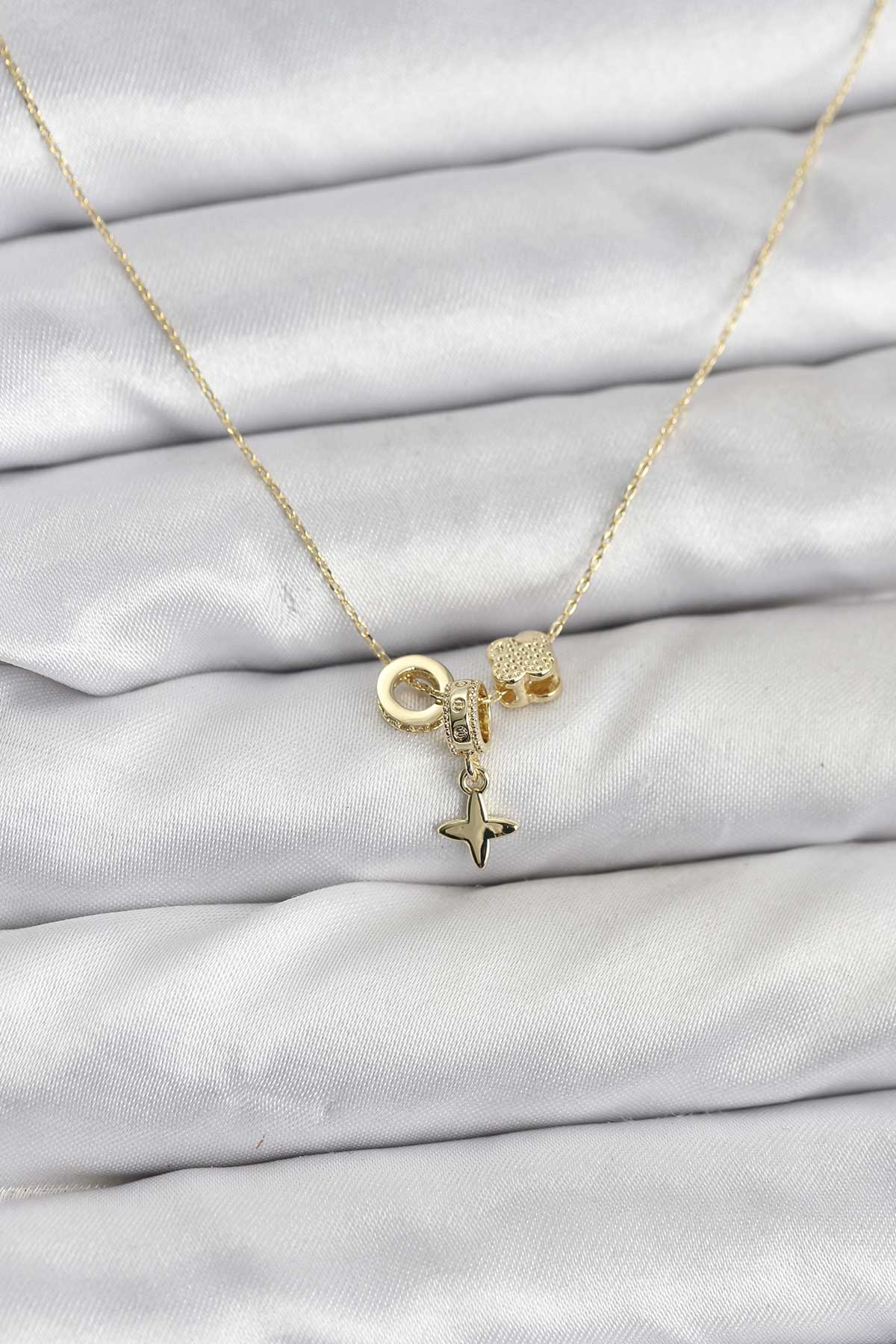 Gold Renk Pirinç Minimal Charmlı Kadın Kolye