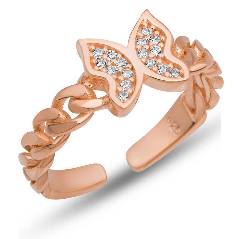 Gümüş Ayarlanabilir Rose Kelebek Kadın YüzükKelebek; kadınlarca tercih edilen en popüler motiflerden biridir. Sevenlerine doğanın gizemini ve insan hayal gücünün zenginliğini hatırlatır. Özgürlüğü masumiyeti ve saflığı simgeleyen kelebekler, tertemiz sevginin ve aşkın ifadesidir. Sizin olduğu kadar sevdiklerinizin de keyifle takacağı kelebek kadın yüzük sevdiğinize en güzel hediyelerden biri olacaktır. Yüzük...