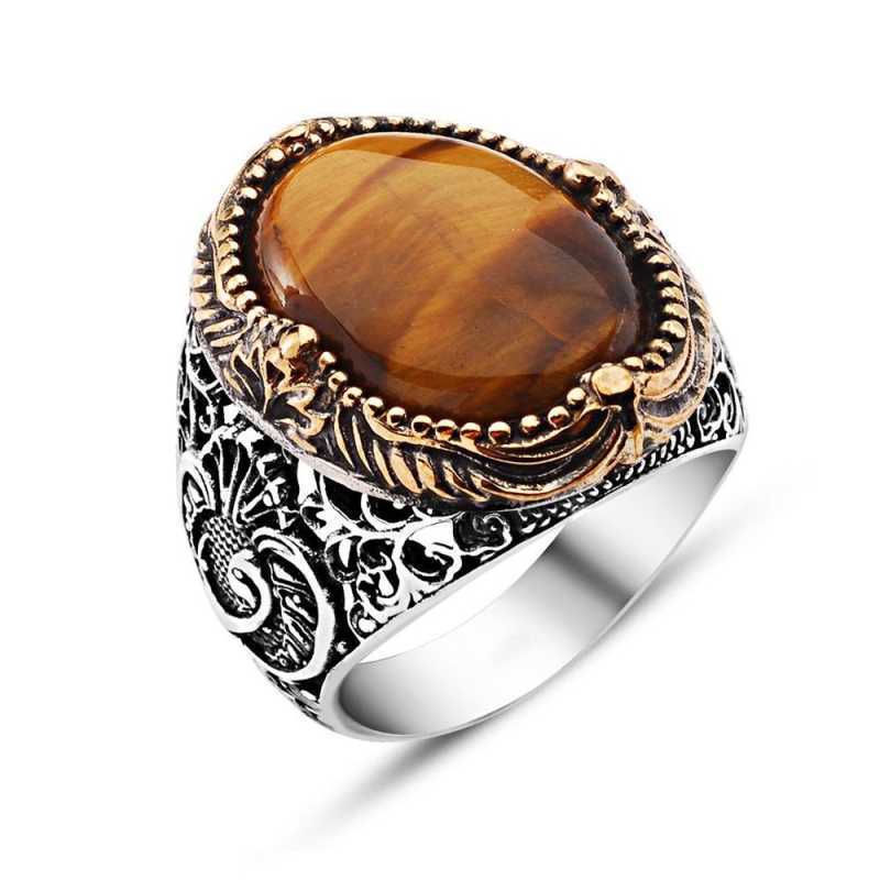Gümüş Kaplan Gözü Taşlı Erkek Yüzük