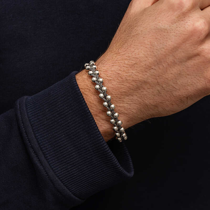 Gümüş Oksitli Toplu Erkek Bileklik Gümüş, klasik ve zamansız bir metaldir. Bu özelliği ile oksitli toplu bileklik, hem günlük hem de özel günlerde tercih edilen bir aksesuar haline gelir.Oksitli işlem, bilekliği benzersiz kılar. Her aksesuarın farklı bir dokusu ve deseni olduğu için, kullanıcı kendi stilini ifade etme imkanı bulur.Gümüş erkek...