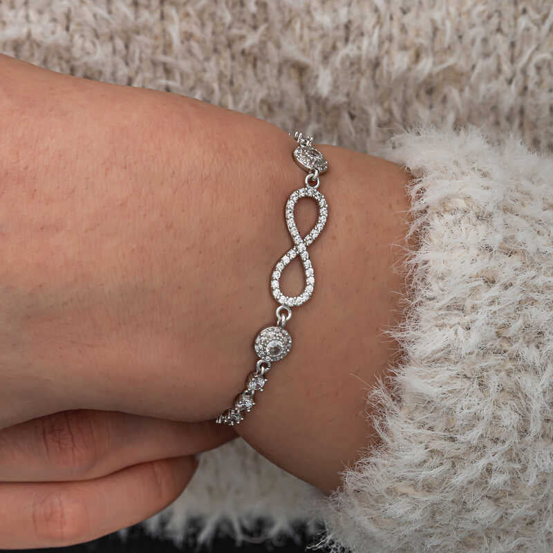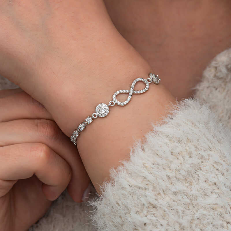 Gümüş Zirkon Taşlı Sonsuzluk Kadın Bileklik