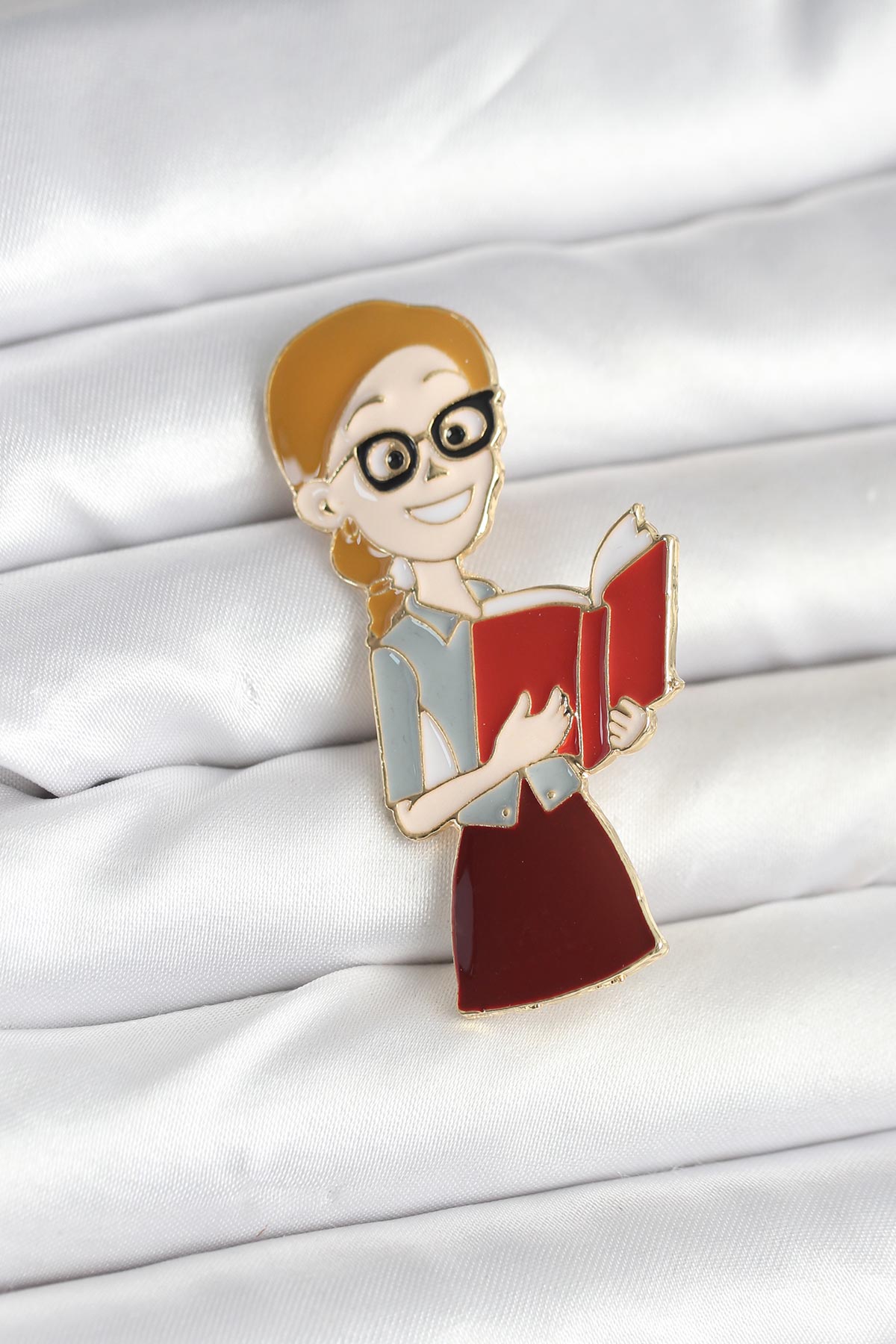 Öğretmen Figürlü Broş - Ürün materyali pirinçtir.- Dikkatli kullanımda kararma, renk atma olmaz.- Ayrıca teninizin bijuteri , kaplama ürünleri kullanmaya uygun olması gerekmektedir. (Bazı tenlerin karartma yaptığı unutulmamalıdır.)- Sağlıklı ve mutlu günlerde kullanmanız dileğiyle…